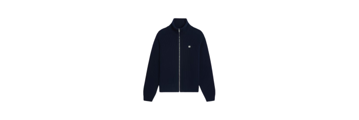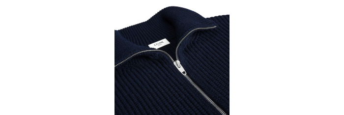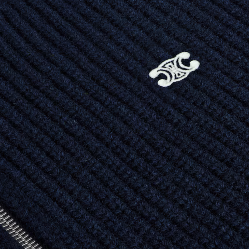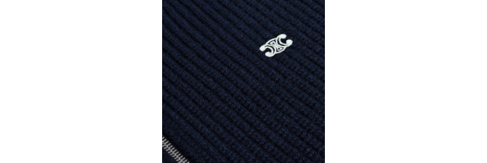 CELINEcardigan zippé col camionneur laine côtelée bleu marine Triomphe Blanc