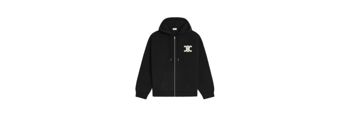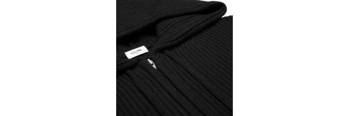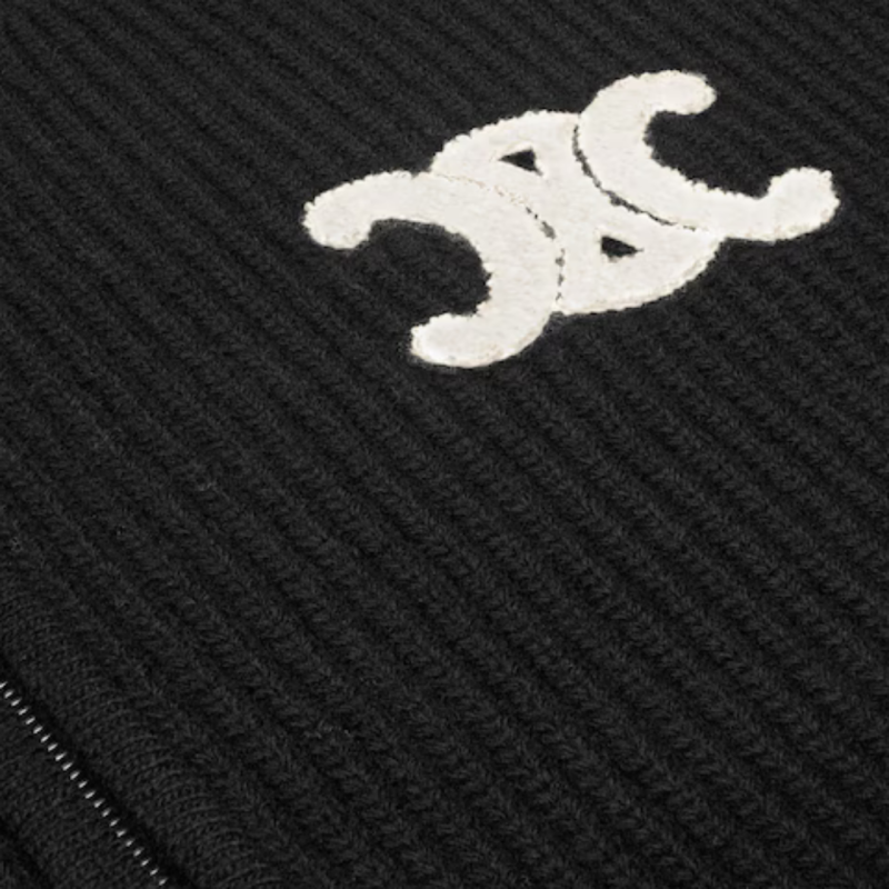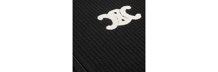 CELINEPull zippé cardigan à capuche laine noir Triomphe blanc