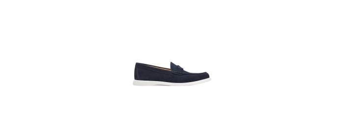 Le mocassin Dior Granville livre une version décontractée du soulier de ville. Confectionné en suède bleu marine, luxueux et ultradoux, ce modèle est rehaussé de la signature CD Icon en laiton mat ton sur ton sur l'empeigne. Cette création est complétée d'une semelle légère en gomme blanche, sublimée par le motif Dior Oblique gravé sur la semelle extérieure et par la signature Dior gravée à l'arrière. Ce soulier apportera une touche d'élégance à tous les looks casual.
