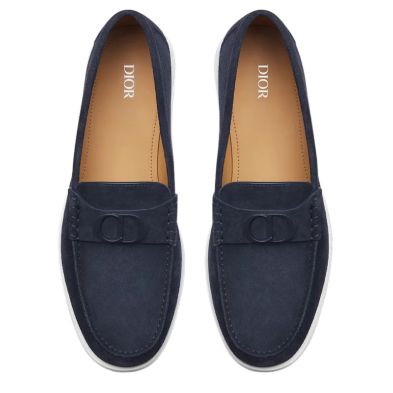 DIORMocassin Granville cuir suède bleu marine CD Icon laiton