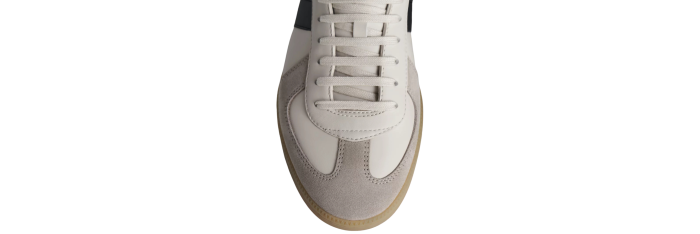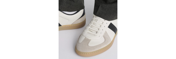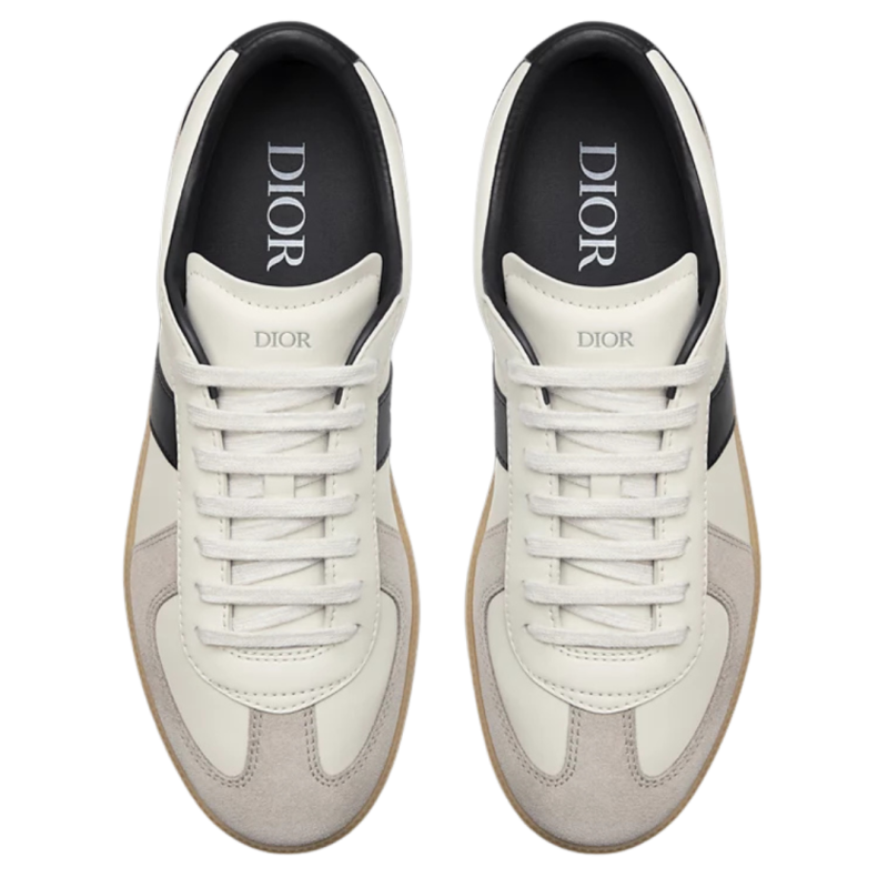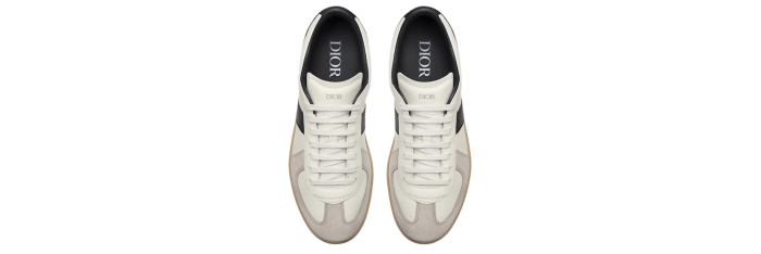 Nouveauté de la collection automne 2025, la sneaker B01 Matchpoint signe le retour d'un design emblématique de la Maison réimaginé à travers une silhouette moderne et élégante. Conçue en cuir de veau lisse noir et blanc, elle est sublimée par des empiècements en suède gris. Ce modèle est rehaussé de la signature Dior sur la languette et sur le côté intérieur, ainsi que la signature CD Icon à l'arrière. Complétée d'une semelle en gomme ambre signée Dior, cette sneaker s'associera à tous les looks de la capsule Dior Icons.