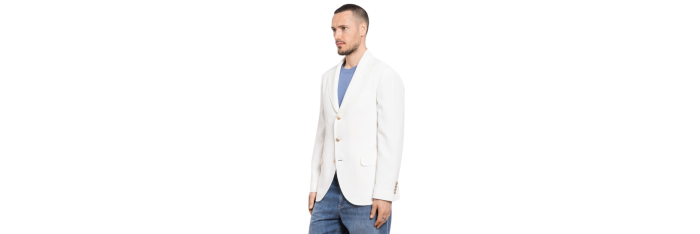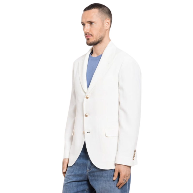 BRUNELLO CUCINELLIBlazer droit lin blanc boutons dorés