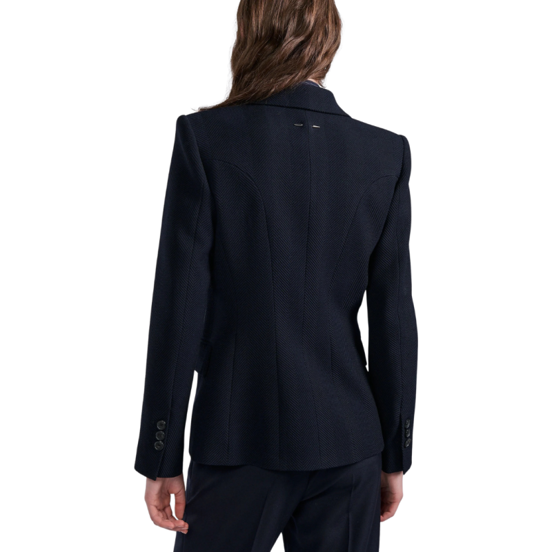BARBARA BUIVeste costume droite un bouton laine chevrons bleu nuit