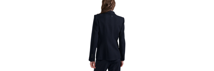 Veste costume droite un bouton laine chevrons bleu nuit