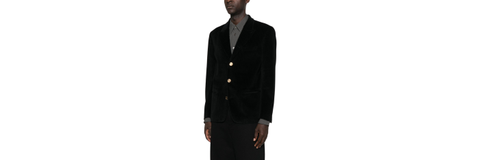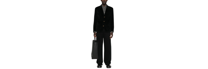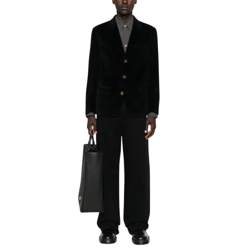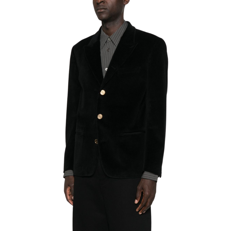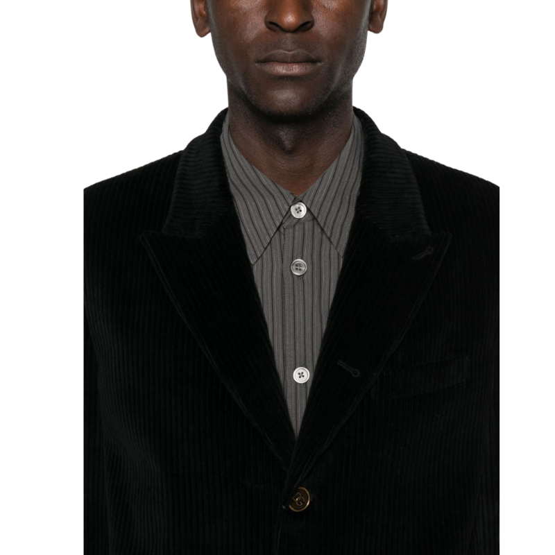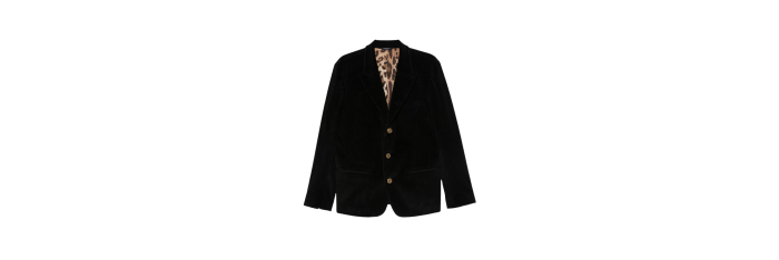 DOLCE & GABBANAVeste droite coton velours côtelé noir intérieur leopard