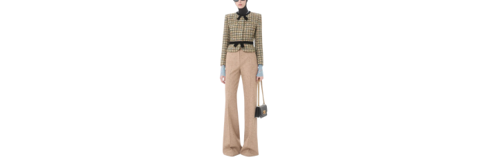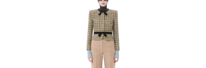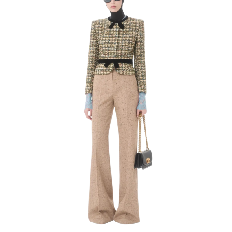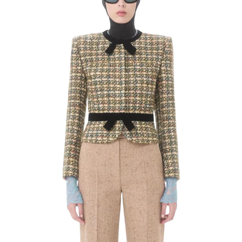 VALENTINOVeste courte col rond tweed multicolore vert doré nœud velours noir