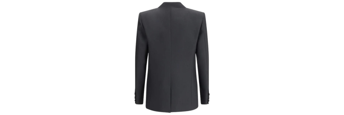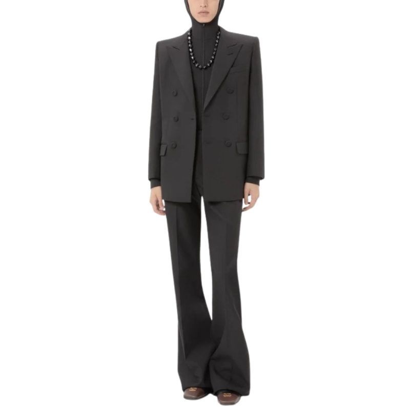 La veste croisée en laine de Valentino Garavani, confectionnée en gabardine de laine fine, reflète l'héritage impeccable de la Maison en matière de confection. Sa silhouette structurée se caractérise par des lignes épurées, des revers crantés classiques et une fermeture croisée à boutons. Des poches à rabat sur le devant complètent cette pièce, expression intemporelle d'une élégance raffinée, conçue pour s'adapter aussi bien aux occasions formelles qu'à un style quotidien contemporain.
