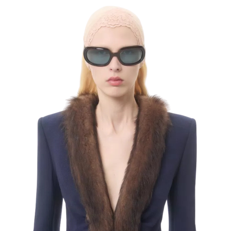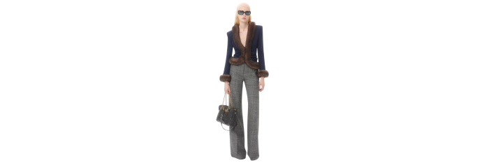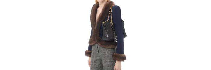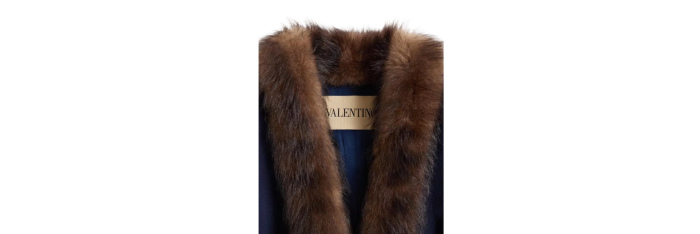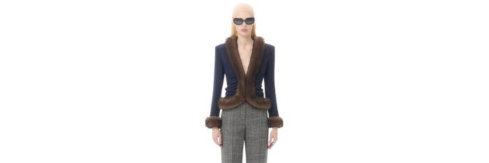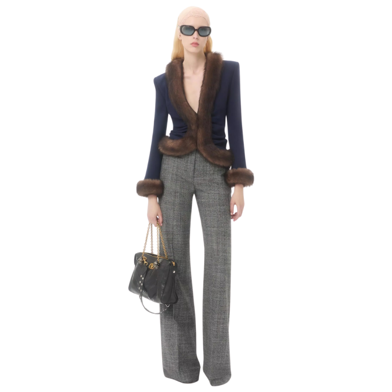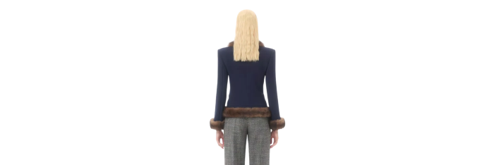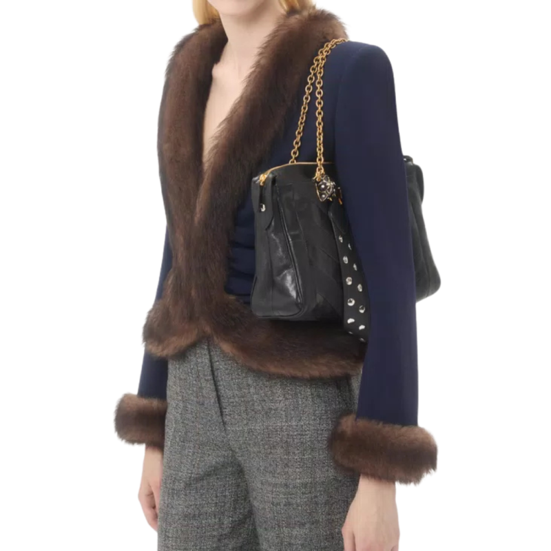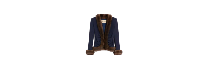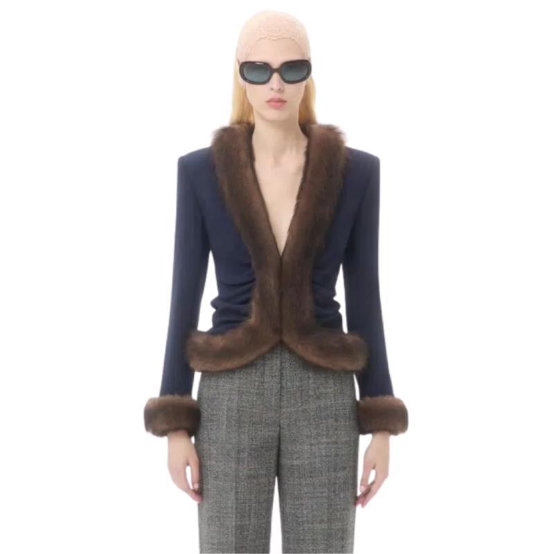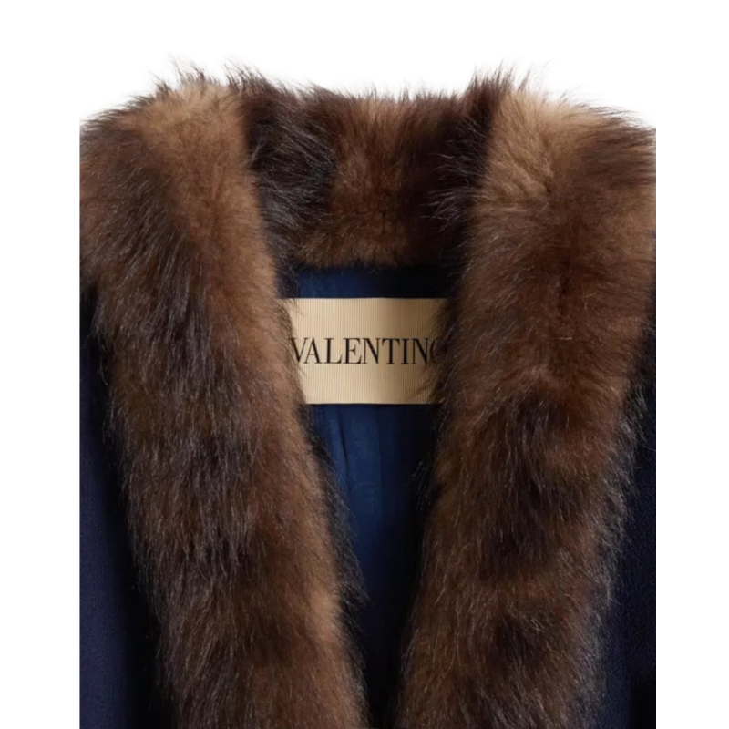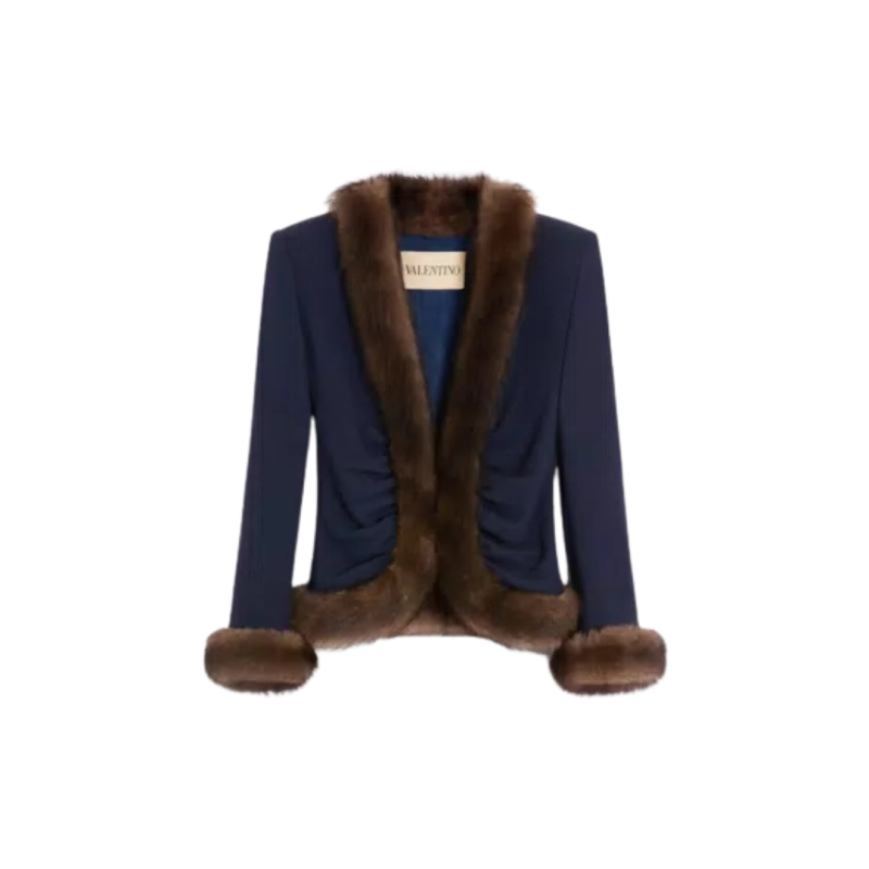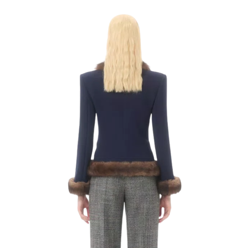VALENTINOVeste courte crêpe laine bleu nuit bordure mouton marron