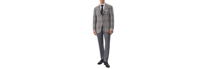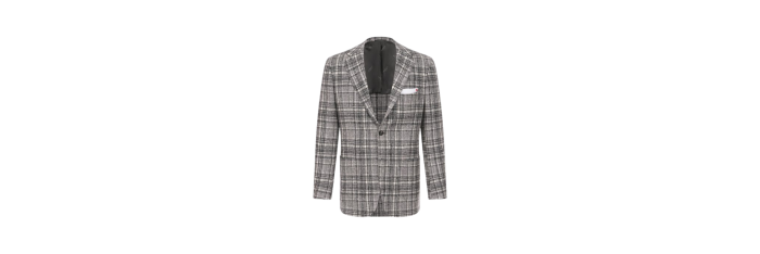 - Veste en laine beige à carreaux, à simple boutonnage, signée CANALI. - Coupe semi-ajustée, manches longues, poches passepoilées à rabat, revers crantés, col rabattu, fermeture boutonnée et fentes d'aisance au dos. -