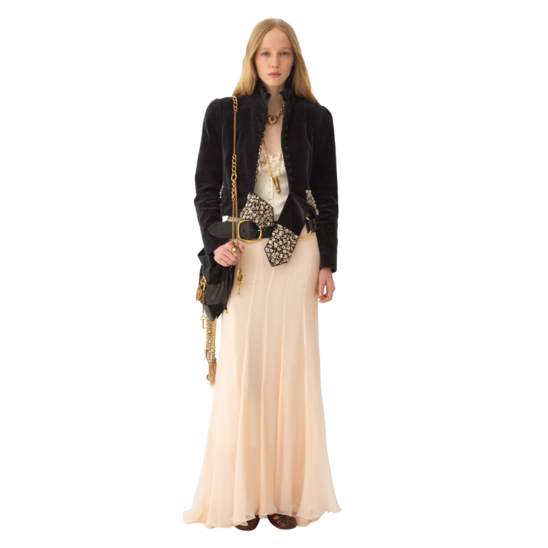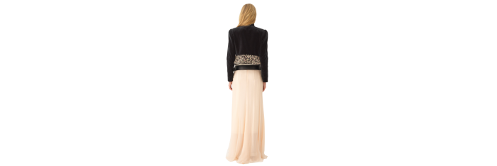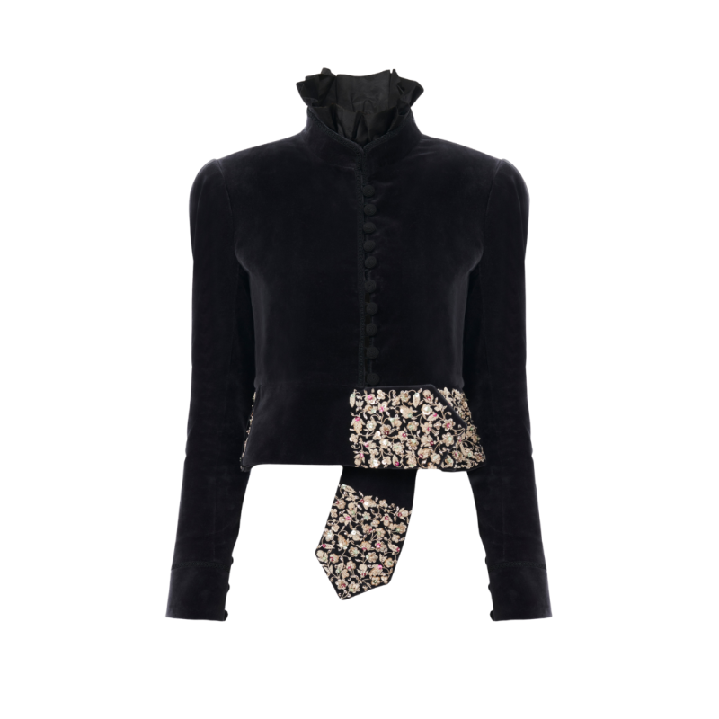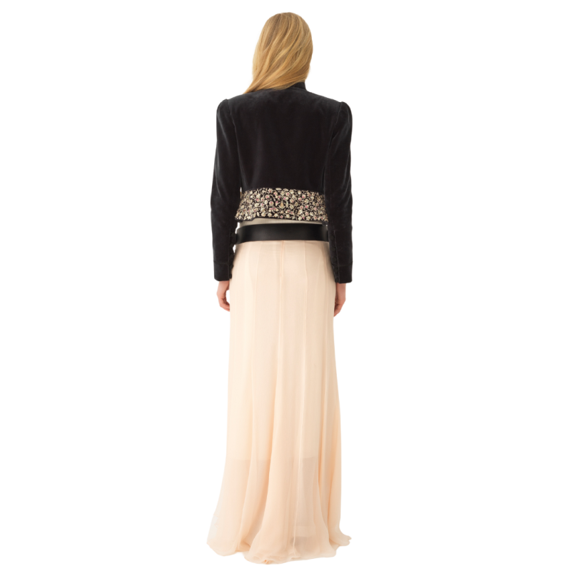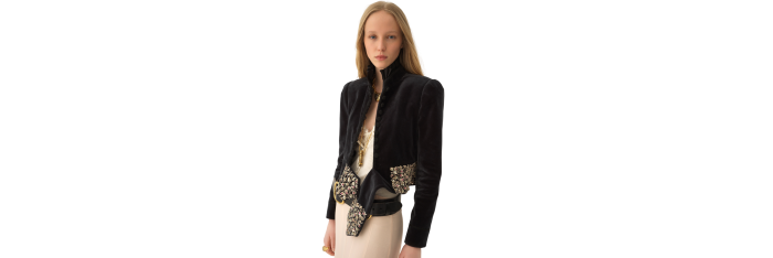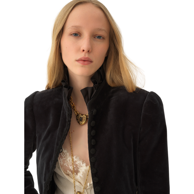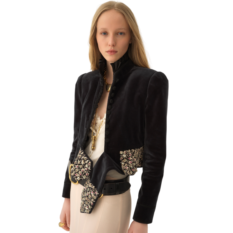 CHLOEVeste spencer col montant volanté coton velours noir broderie perles