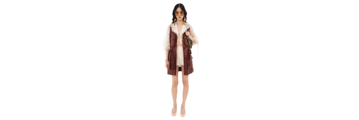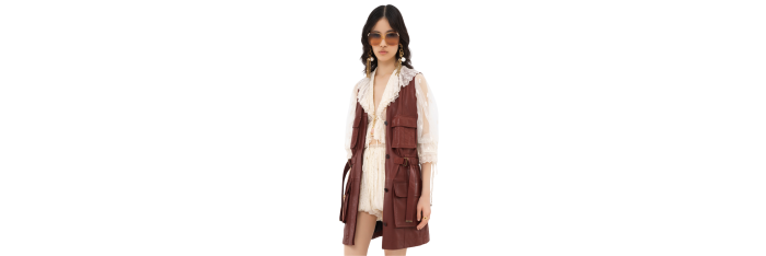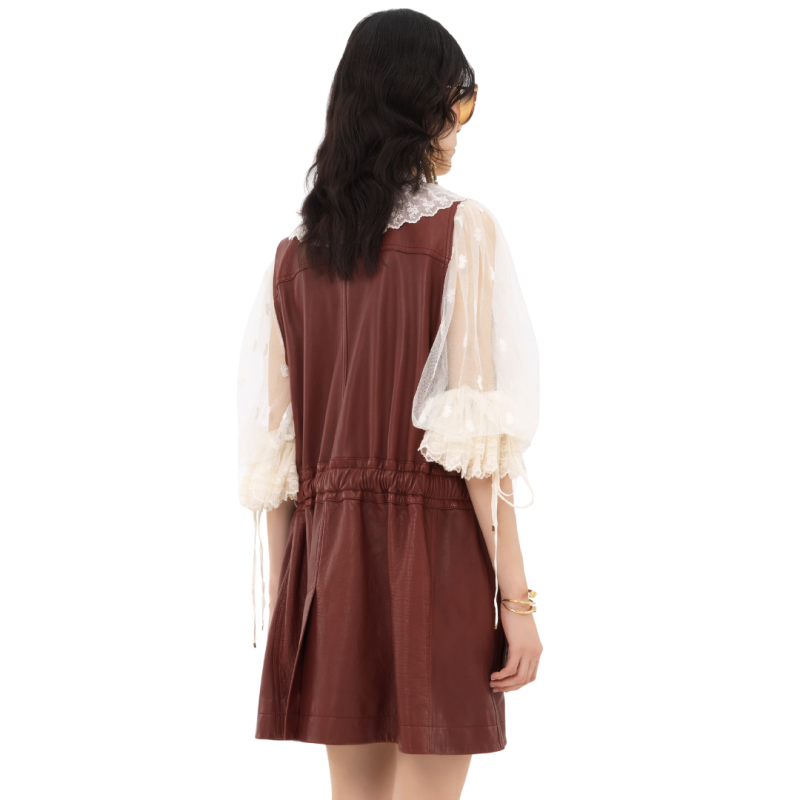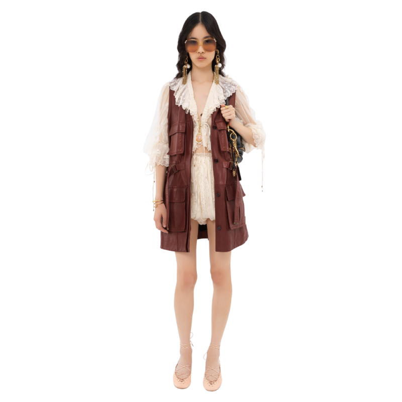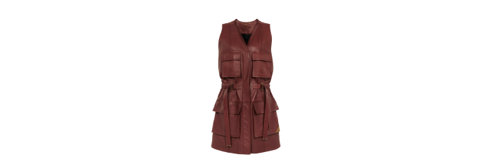 CHLOEVeste sans manche saharienne cuir agneau bordeaux