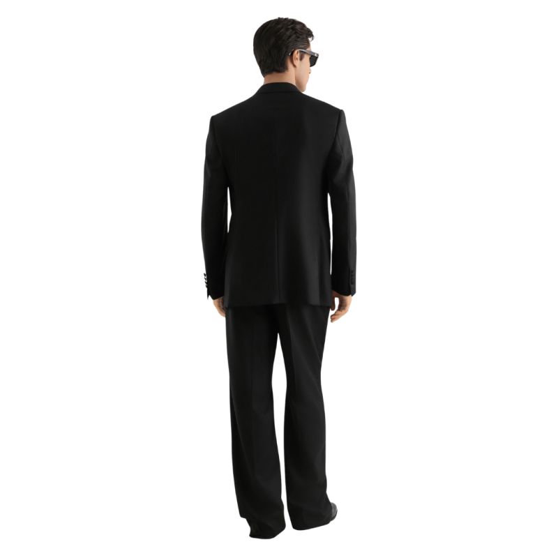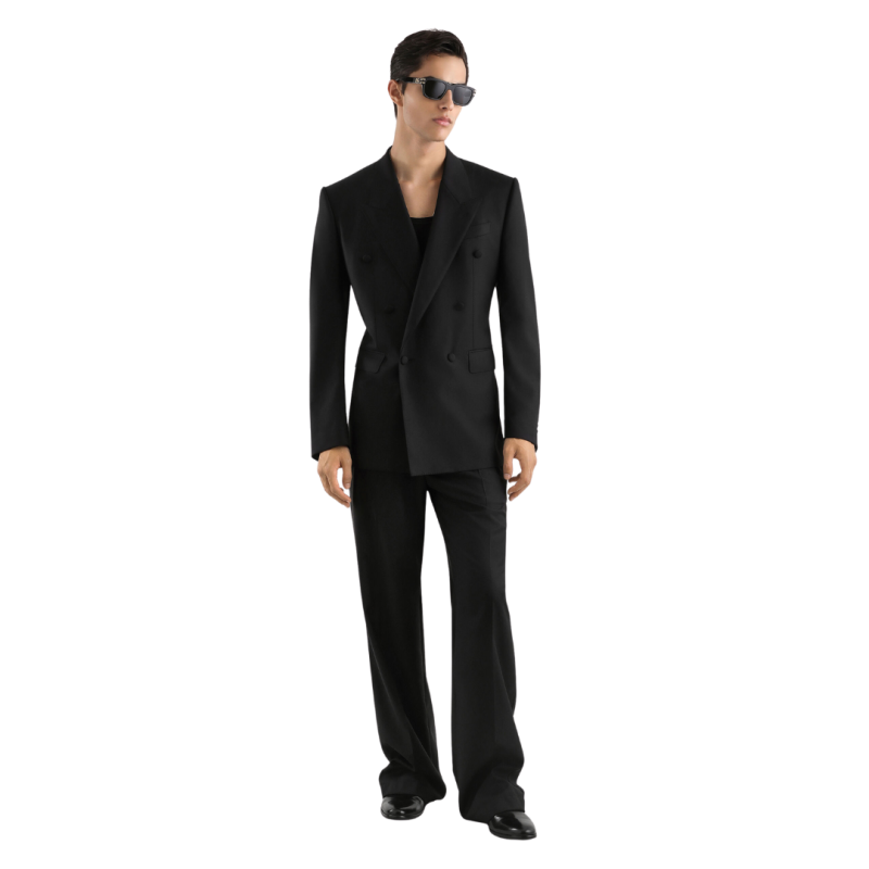 DOLCE & GABBANAVeste droite costume sergé laine bleu marine intérieur pois